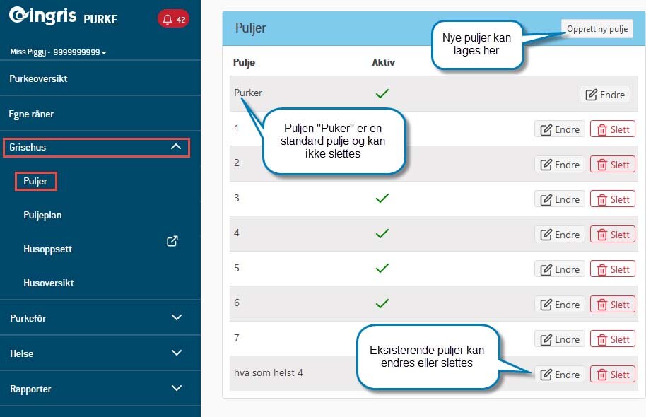 Ingris krever at man minst har èn pulje, så for enkelthetsskyld har vi laget en standard pulje kalt “Purker” og gjort det slik at den ikke kan slettes. Du er ikke nødt til å benytte deg av denne puljen, så den kan godt stå tom, men Ingris krever at den finnes.