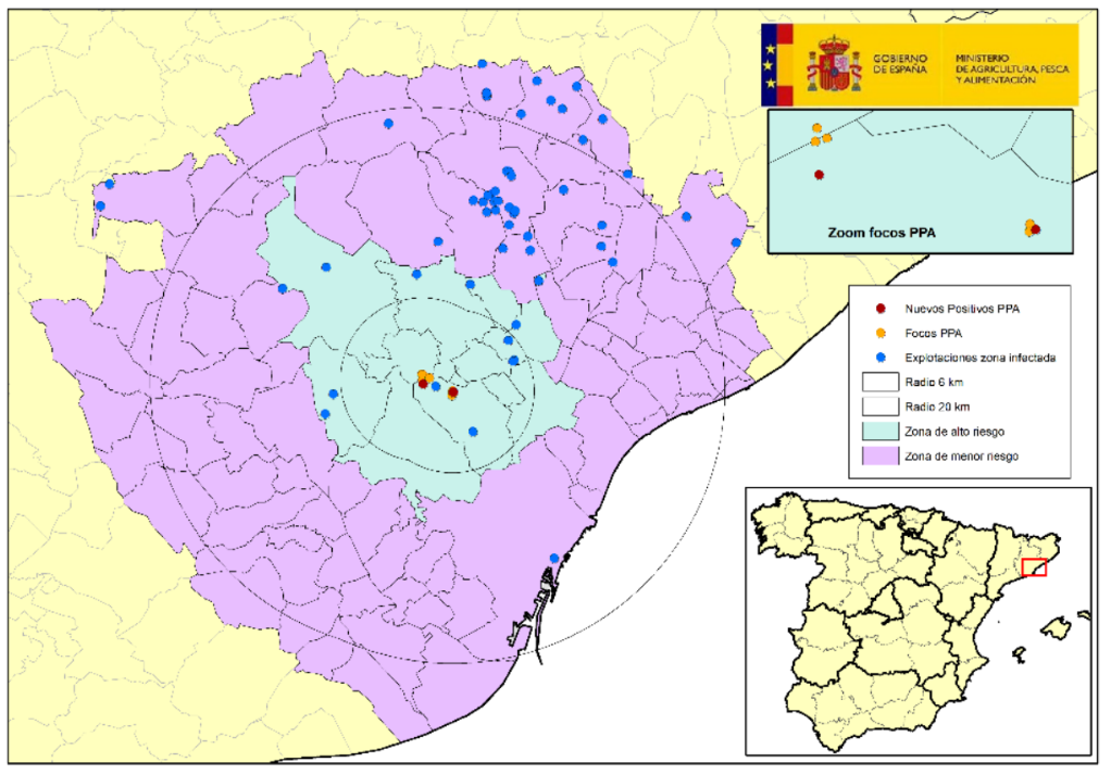 Spania er Europas største produsent av svinekjøtt, og et utbrudd av ASF får store konsekvenser for eksporten av svinekjøtt til tredjeland. Flere land, som Kina, Japan og Mexico har allerede innført importstopp av svinekjøtt fra Spania og prisene på spansk svinekjøtt har falt betydelig.