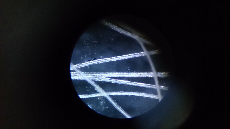 Margfri ull vil være gjennomsiktig. Hvitt inni ullhåret er marg.